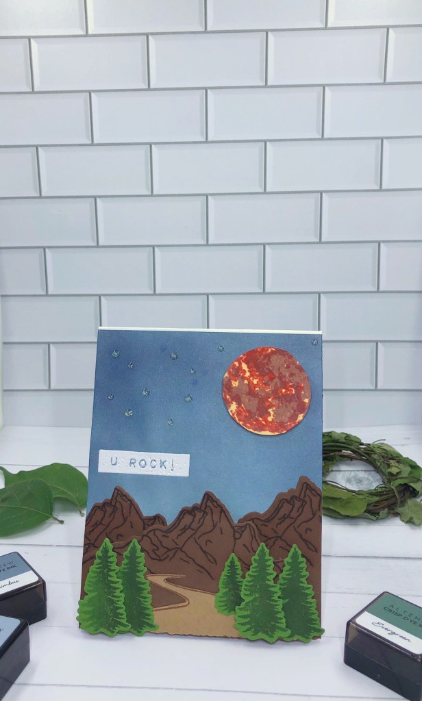 Hey y’all! Thanks so much for stopping by to view this post about cards for the guys. One of my challenges for the Altenew Educator Program was to create a card specifically with the guys in mind. This made me look harder at the Altenew stamps I had on hand and what I could purchase to create a great card for an outdoorsy kind of guy. When I was thinking about the outdoors, I immediately thought about mountains and a big blood moon. While growing up, my dad loved mountains. This actually was a card idea I wanted to create for his Father’s Day card, but he passed away in May. I loved how this turned out to be a simple outdoors scene like you might find in Montana or Wyoming. Immediately, I thought about the Altenew Once Upon A Time stamp and die set and the Altenew To the Moon stamp and die set.
